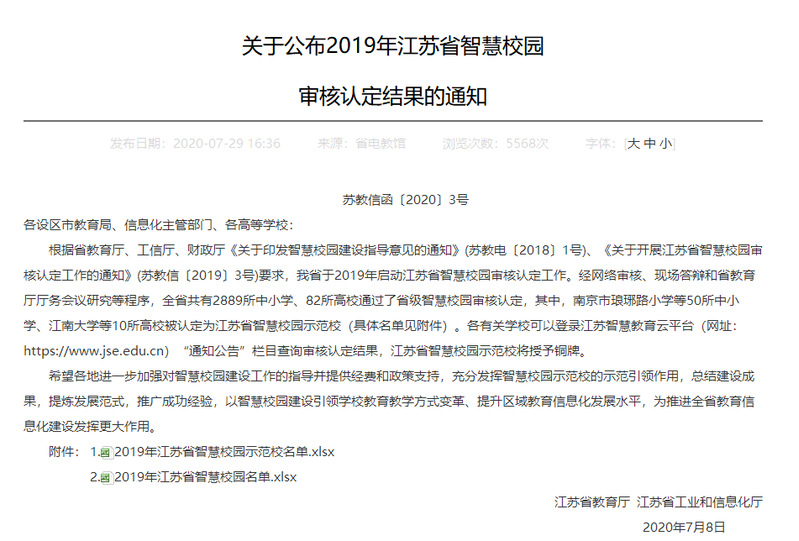 近日,江苏省教育厅、江苏省工业和信息化厅公布了2019年江苏省智慧校园审核认定结果,纽约国际官网成为江苏省首批高校智慧校园。