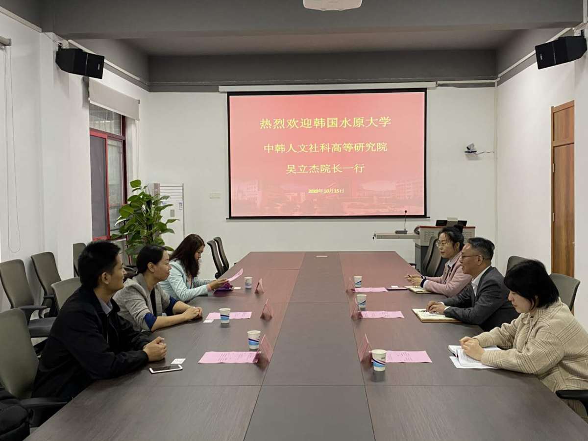 10月15日,韩国水原大学中韩人文社科高等研究院院长吴立杰、主任韩帅、水原大学江苏省学习中心主任朱巧云一行三人来到国际交流学院交流洽谈。国际交流学院院长何斌在学院会议室接待了来访客人,学院相关工作人员参加了会谈。
