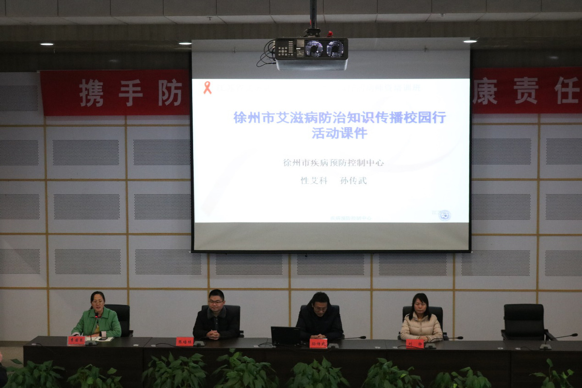 在第33个“世界艾滋病日”之际,12月1日,校医院与经济管理学院在图书馆报告厅联合举办了“携手防疫抗艾 共担健康责任”主题宣传教育活动。徐州市疾控中心性艾科科长孙传武、医师张培栋,泉山区疾控中心疾传科科长刘静莅临现场,200余名学生参加了活动。