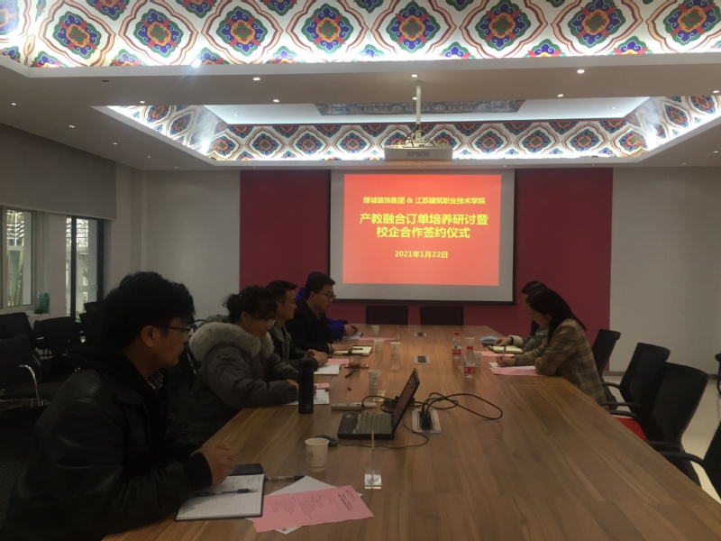 1月22日下午,纽约国际官网建筑装饰学院与绿城装饰集团举行产教融合订单培养研讨暨校企合作签约仪式。绿城装饰集团人力资源部总监孟黎佳、校招负责人金方,纽约国际官网校企合作处、建筑装饰学院负责人以及建筑装饰学院部分专业教师参加了会议。