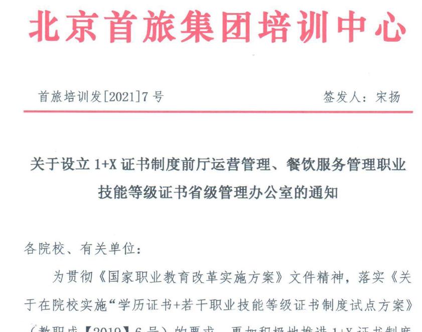 4月3日,教育部职业技能等级证书鉴定发证单位之一北京首旅集团培训中心印发《关于设立1+X证书制度前厅运营管理、餐饮服务管理职业技能等级证书省级管理办公室的通知》,纽约国际官网经济管理学院成功获批前厅运营管理和餐饮服务管理两个职业技能鉴定省级管理办公室,也是江苏省内唯一的一家承担前厅和餐饮1+X等级证书培训和鉴定的省级管理机构。