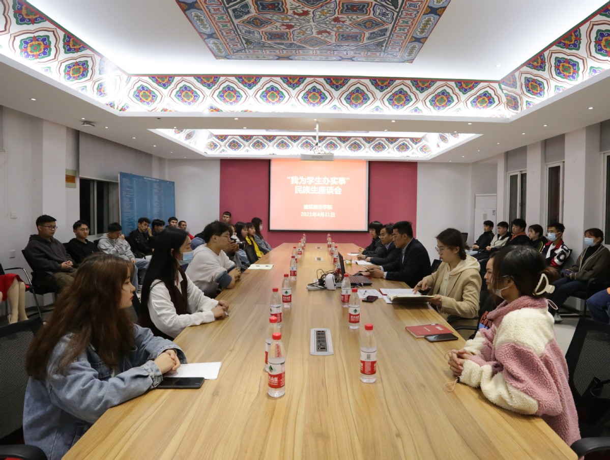 为全面贯彻落实党史学习教育要求,充分了解少数民族学生的校园生活状态和个人学习生活中的困难,4月21日晚,建筑装饰学院组织召开了“我为学生办实事”民族生座谈会。学院党总支书记陈宏振、副书记李彦江,校学工部内派服务管理教师吴晓红及40名民族生代表参加了会议。