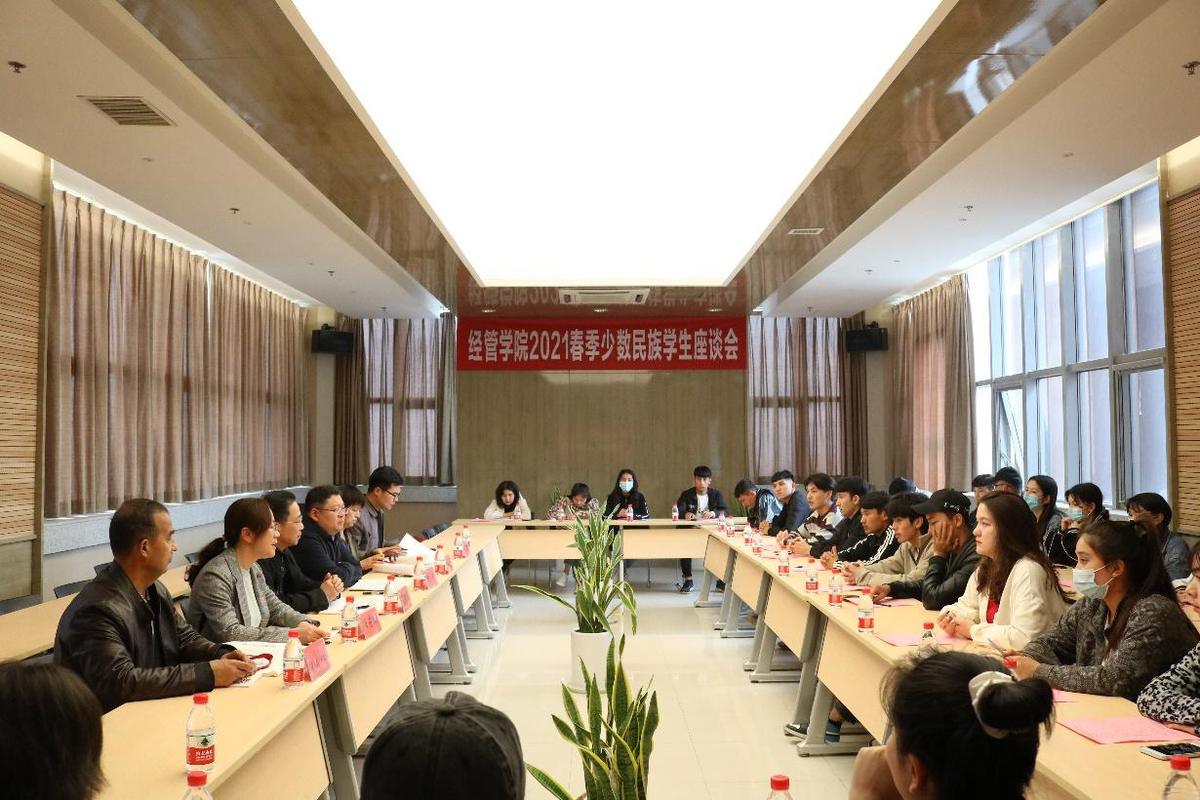 4月23日下午,经济管理学院召开2021春季少数民族学生座谈会。组织部、学工处、经济管理学院相关负责人以及30名少数民族学生代表参加会议。