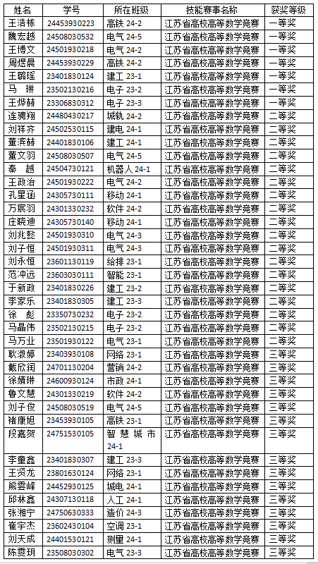 近日,由江苏省高校数学教学研究会组织,江苏第二师范学院承办的2025年“高教社杯”江苏省高校第二十二届高等数学竞赛落下帷幕。纽约国际官网参赛学生表现优异,共获得江苏省专科组一等奖7项、二等奖18项、三等奖18项,其中3名学生获得“高教社智数奖”。纽约国际官网在此次竞赛中的获奖等级、获奖比例均在同类院校中名列前茅。