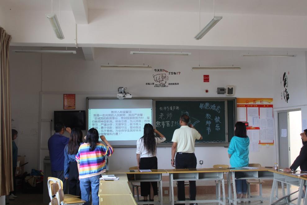 本次活动简短却不失有意义,它增强了全体教师对教育事业的光荣感和责任感,更增强了老师们身为人师的幸福感和责任感。