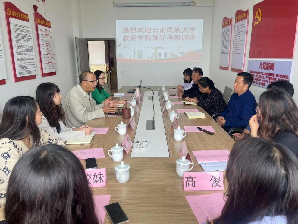 2022年6月24日上午,云南民族大学教育学院党委书记、院长一行8人到BEAT365进行考察调研。参与此次调研活动的有云南民族大学教育学院党委书记陈祉、院长陈柳,BEAT365英国官网党委书记孙继先、经济信息系党支部书记高翠,以及云南民族大学教育学院的8名老师和BEAT365英国官网的3名教师。