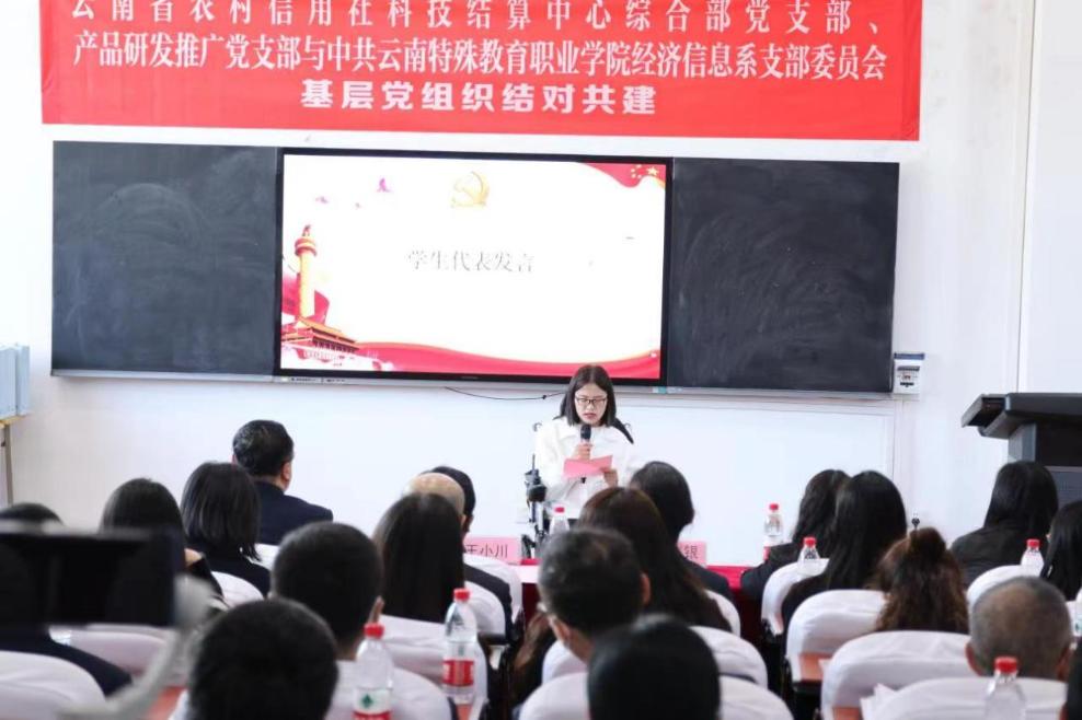 正值学雷锋纪念日60周年之际,为更好弘扬雷锋精神,加强基层党支部建设,引领学生成长,贯彻落实“三全育人”理念,推动高职院校与地方企业基层党建融合,2023年3月2日下午,中共云南省农村信用社科技结算中心综合部党支部、中共云南省农村信用社产品研发推广党支部与中共BEAT365英国官网经济信息系党支部举办了基层党组织结对共建活动暨经济信息系党支部主题党日活动。出席本次活动的有云南省农村信用社综合部党支部书记盛严立同志以及全体党员、经济信息系党支部副书记王小川同志以及全体党员、入党积极分子以及部分学生代表,石安银副书记作为特邀嘉宾出席活动。