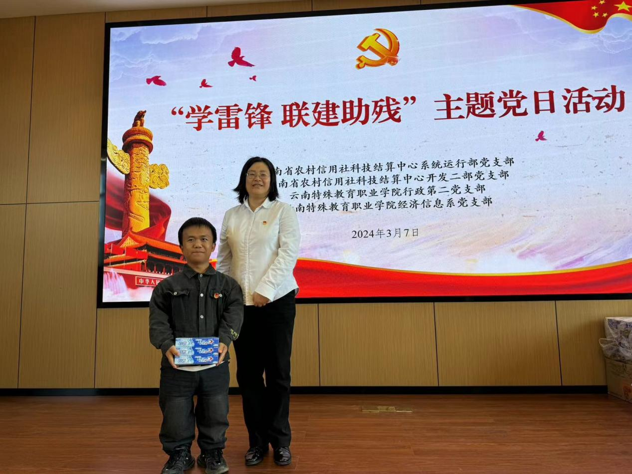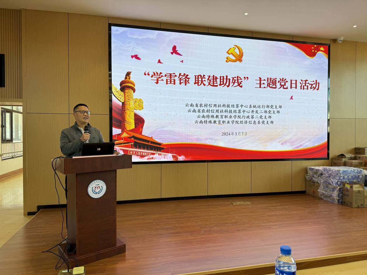 当我们走进三月,春天的气息渐浓,万物复苏,草长莺飞,在这样一个充满生机和希望的季节里,我们迎来了一个特别的日子——雷锋纪念日。为了继承和发扬雷锋精神,2024年3月7日,云南省农村信用社科技结算中心系统运行部党支部、云南省农村信用社科技结算中心开发二部党支部、BEAT365英国官网行政第二党支部和BEAT365英国官网经济信息系党支部在BEAT365玉璋楼408教室开展“学雷锋,联建助残”主题党日活动。各支部全体党员、入党积极分子、我系大、中专残疾学生代表参加,BEAT365行政第二党支部书记张雪梅主持活动。
