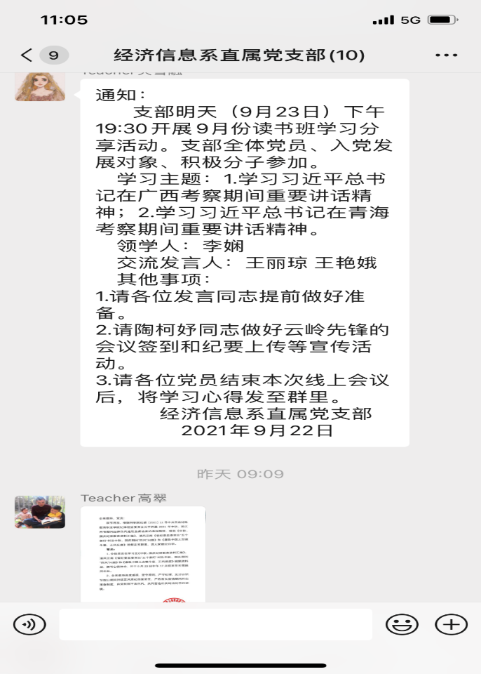 为深入学习习近平总书记在青海、福建的重要讲话精神,重温党的奋斗历程和伟大成就,感悟党的光荣传统和优良作风,传承党的历史经验和时代使命,在学思践悟中做到学史明理、学史增信、学史崇德、学史力行。经济信息系直属党支部于9月23日19时在腾讯会议上开展线上九月主题党日暨专题读书班学习活动。参加人员有支部书记...