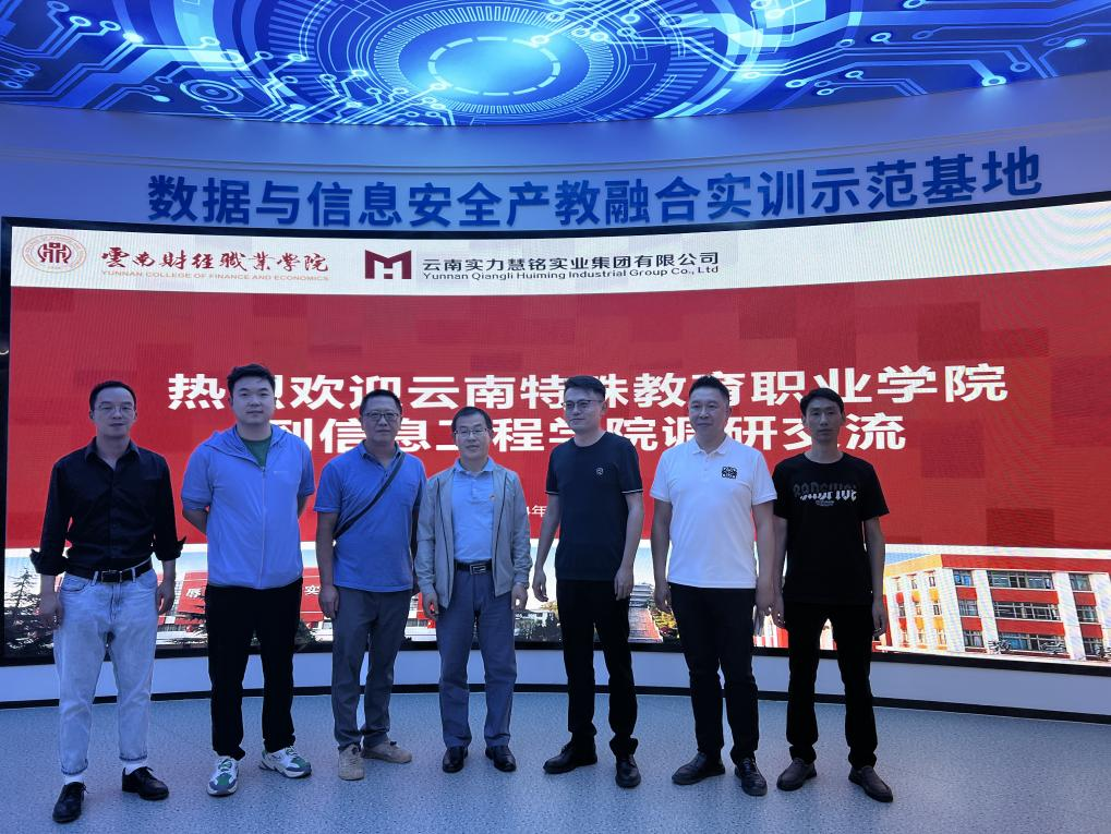为深化校校合作,拓宽办学视野,探讨校企合作和产教融合,4月29日,BEAT365英国官网副校长李永芳一行人前往云南财经职业学院信息工程学院交流学习,云南财经职业学院副校长尹湘萍、教务处副处长马小然、信息工程学院院长黎乾坤以及云南实力慧铭实业集团总经理刘彬、助理陈俊协同数据安全产业学院教学团队成员参与此次交流。