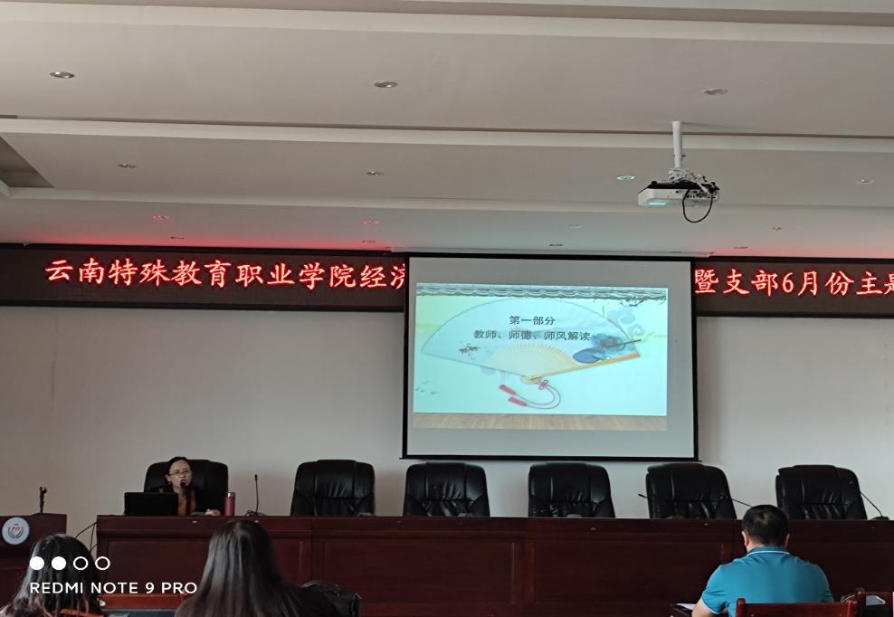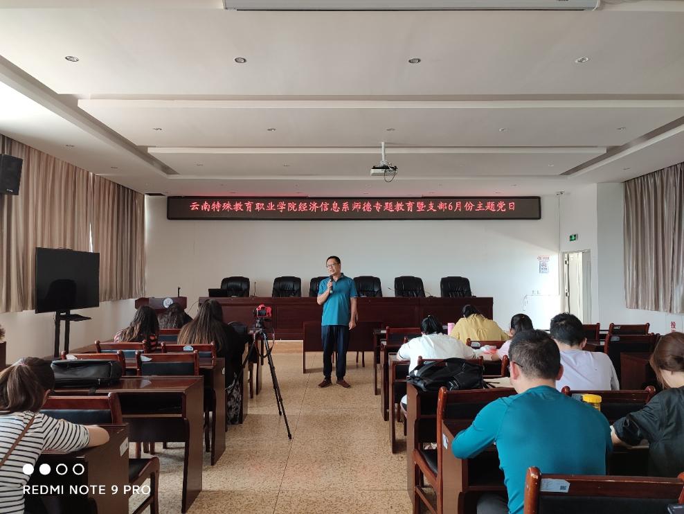 为全面贯彻党的指导方针,强化以党史学习教育为重点的“四史”学习教育,响应学院对教职工爱岗敬业、无私奉献的号召,提高我系教师政治素质和道德水平,调动我系教师教书育人的积极性,提高教学质量。根据《教育部关于在教育系统开展师德专题教育的通知》(教师函【2021】3 号)、《BEAT365英国官网师德专题教育工作实施方案》和《经济信息系师德专题教育工作实施方案》,经济信息系6月16日12:40在学院大会议室召开了师德专题教育暨支部6月份主题党日活动,全系教师参加了此次活动。