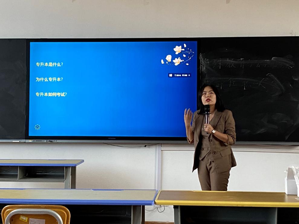 本次公益讲座由常雪老师主讲,从“专升本是什么”、“为什么专升本”、“专升本如何考试”三个方面展开讲座。为同学们详细解读了云南省最新的专升本政策、2020年各高校专升本情况数据分析、专升本报名政策、报名时间、志愿填报及技巧等。她鼓励同学们增强学习动力,把握正确的备考方向,更好地规划自己的职业和学业生涯。