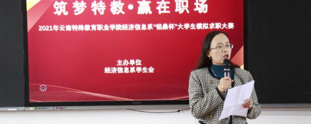 为贯彻党中央、国务院和省委、省政府关于做好“六稳”落实”六保”任务的决策部署,按照云南省教育厅、云南省人力资源和社会保障厅文件要求,积极响应学院号召,为了做好我系学生的就业指导工作,加大就业服务工作力度。2021年11月2日,经济信息系在玉璋楼408举行了“筑梦特教、赢在职场”2021年“铭鼎杯”大...
