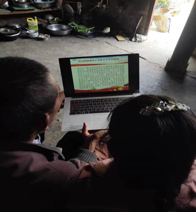 图为T2019会计杨学涧和村里的大学生一起联合开展了“党的声音进万家”宣讲活动
