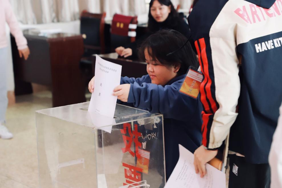 大会当天应到会有选举权的团员代表124名,实到会有选举权的团员代表119名,病、事假5名。根据团章规定,采取无记名投票方式和差额选举办法,对十名候选人进行投票差额选举。最后选举产生杨燕、毕新荟、七林拉初、黄飞、陶柯妤5名同志为经济信息系团总支委员会委员。当天5名候选人由于赞成票数不过半,根据《中国共产主义青年团基层组织选举规则》的规定,主席团二次酝酿候选人。