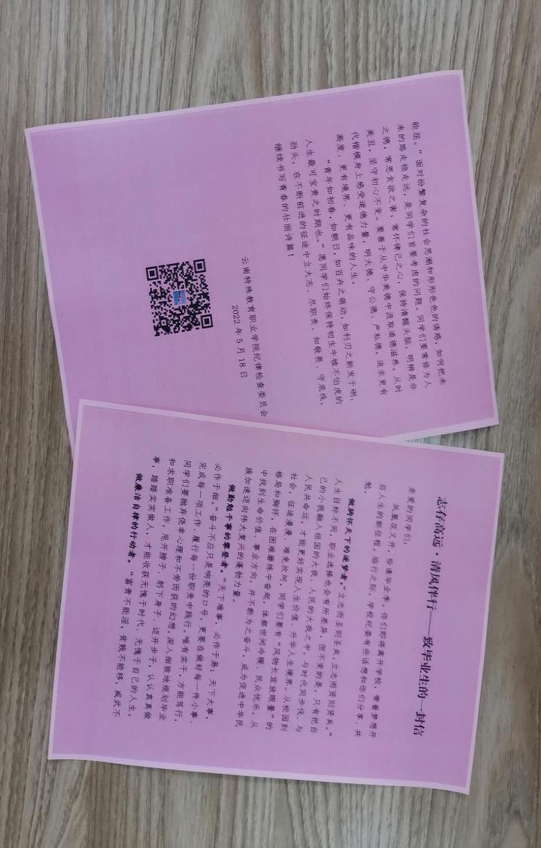 图为学院纪委制作的给毕业生的廉洁书信