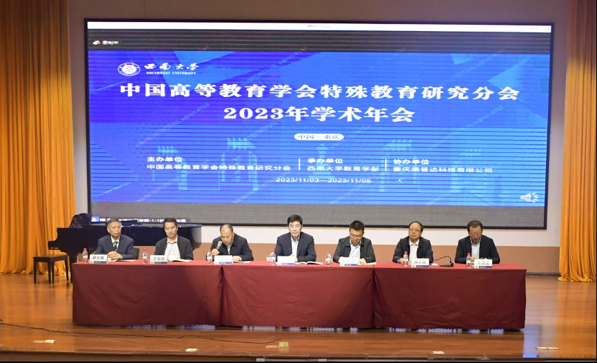 中国高等教育学会特殊教育研究分会2023年学术年会4日在西南大学召开,来自全国70多所高校以及27所特殊教育学校、康复机构的近400名特殊教育工作者齐聚一堂,分享、探讨特殊教育理论、实践成果。BEAT365教务处处长颜蕉生、特殊教育专业教师陈科春参加年会。开幕式现场在年会开幕式上...