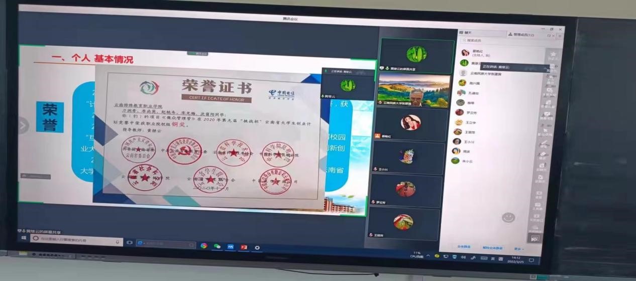 我院2022年“名师工作室”评审于2022年3月25日举行。因疫情防控需要,本次评选工作采取腾讯视频会议的形式开展,会议由学院教务处王立宇主持,参与评审的专家是云南民族大学张建国教授、云南民族大学罗云芳教授、云南国防工业职业技术学院朱小云副教授、昆明学院周波副教授、云南师范大学孔德宏副教授。竞选教师邓迎、王丽萍、柳琴、黄继云、王小川和教务处工作人员参加了会议。首先由王立宇介绍与会专家和会议流程,公平起见,现场使用抽签小程序对竞选教师自述顺序进行抽签,随后由竞选教师按顺序就自身成果和工作室建设目标、实施方案、进度安排、预期成果、具体量化目标方面进行10分钟的自述。之后,5位评审专家根据自述报告情况对竞选教师进行了评价和质询。