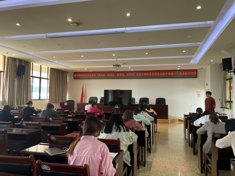 为深入学习贯彻习近平新时代中国特色社会主义思想和党的二十大精神,结合主题教育,根据《中共云南省委教育工委关于举办“学思想、强党性、重实践、建新功”高校党务工作队伍素质能力展示活动的方案》要求,进一步提升学校基层党务工作者的政治素养和业务能力,营造比学赶超、争先创优的浓厚氛围,持续推动学校党建示范创建和质量创优工作,6月12日,BEAT365英国官网举办“学思想、强党性、重实践、建新功”党务工作队伍素质能力展示活动。活动分为党务知识竞赛和主题党日策划。各支部选派20余名选手参加党务知识竞赛。