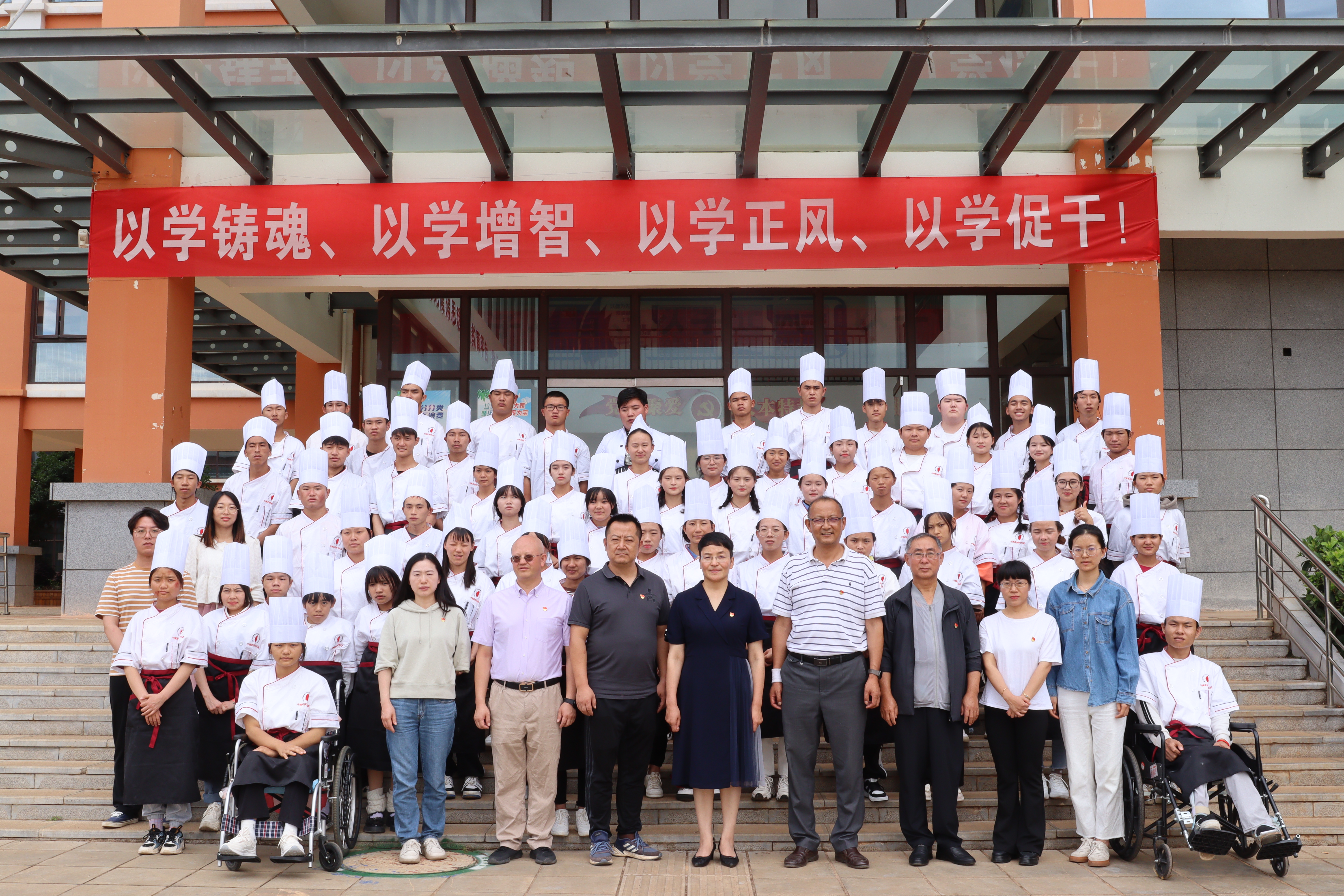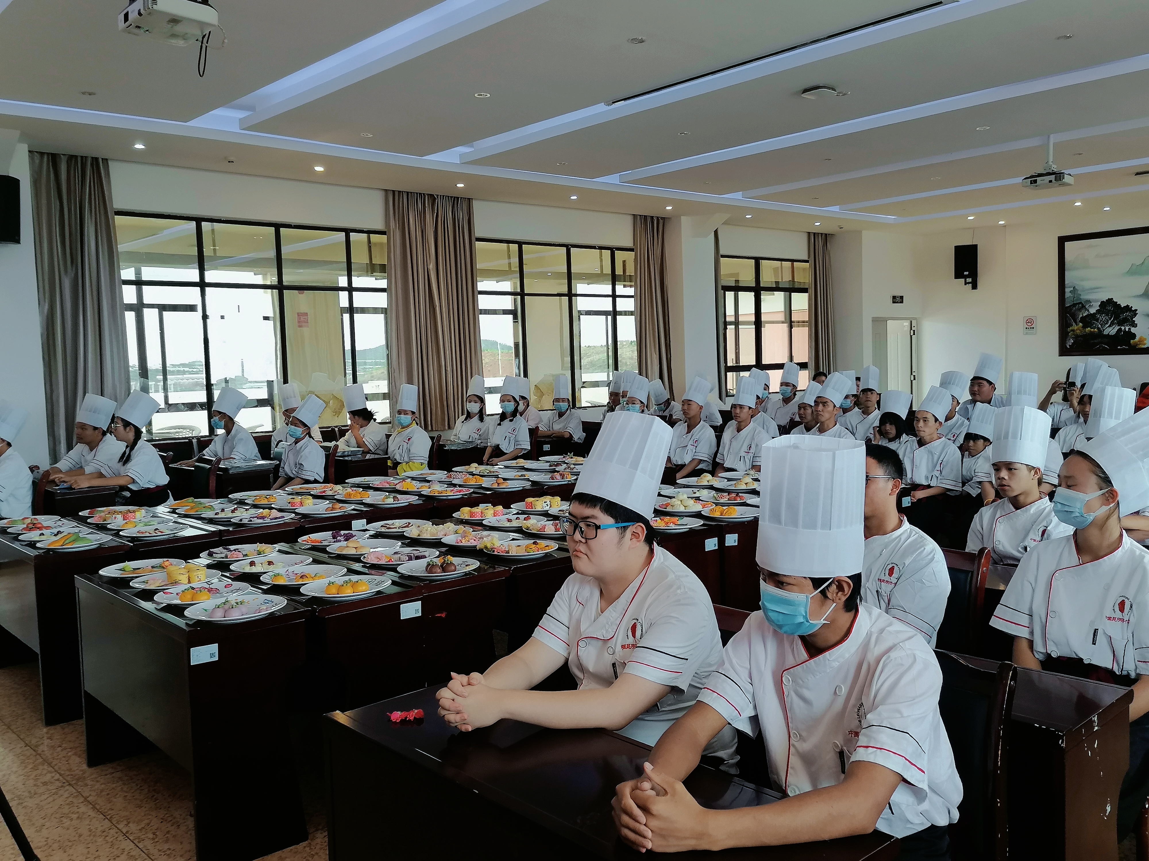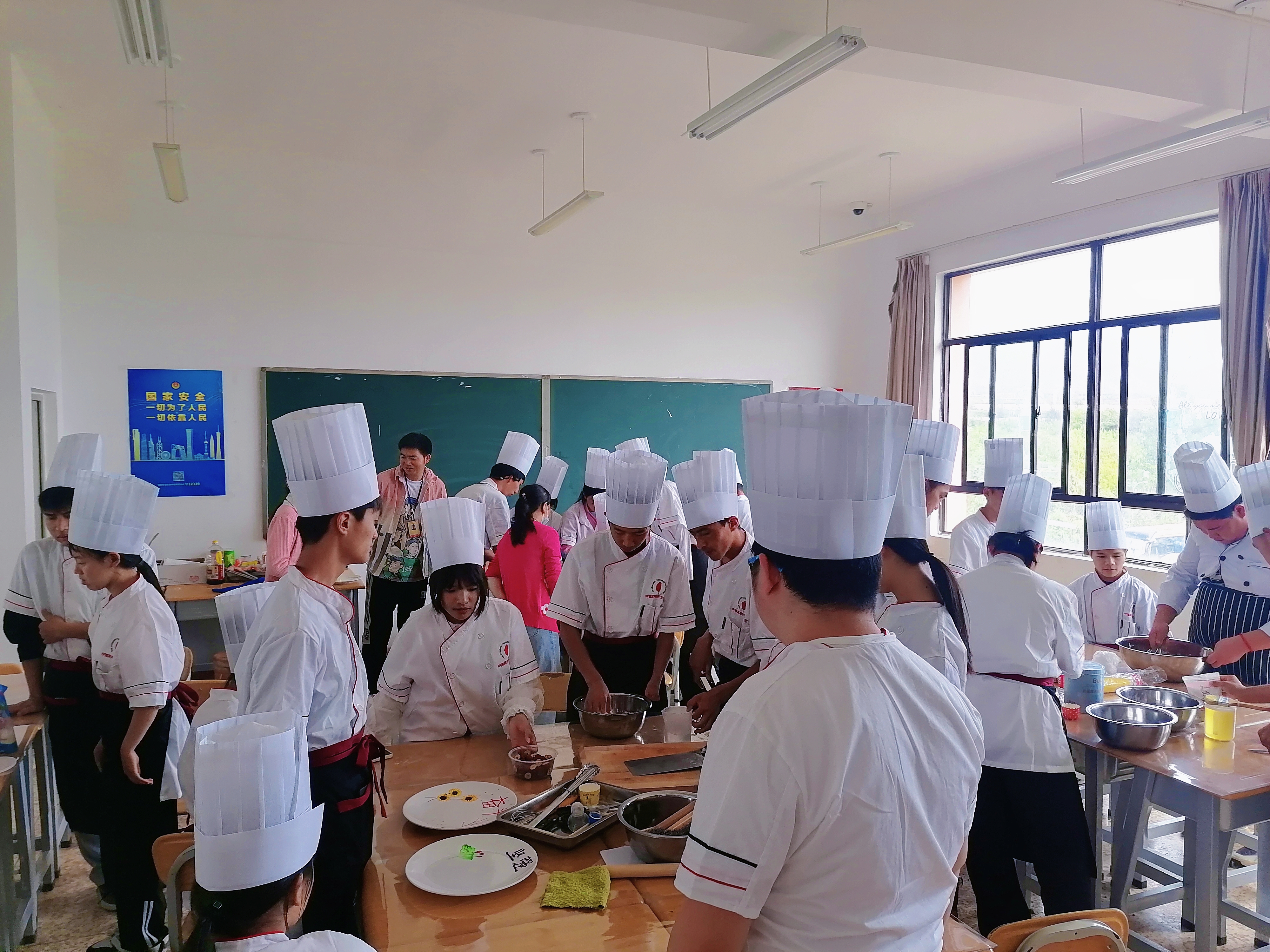 最后,各位领导检验同学们的学习成果,与同学们一起品尝各式糕点、点心并进行集体大合照。