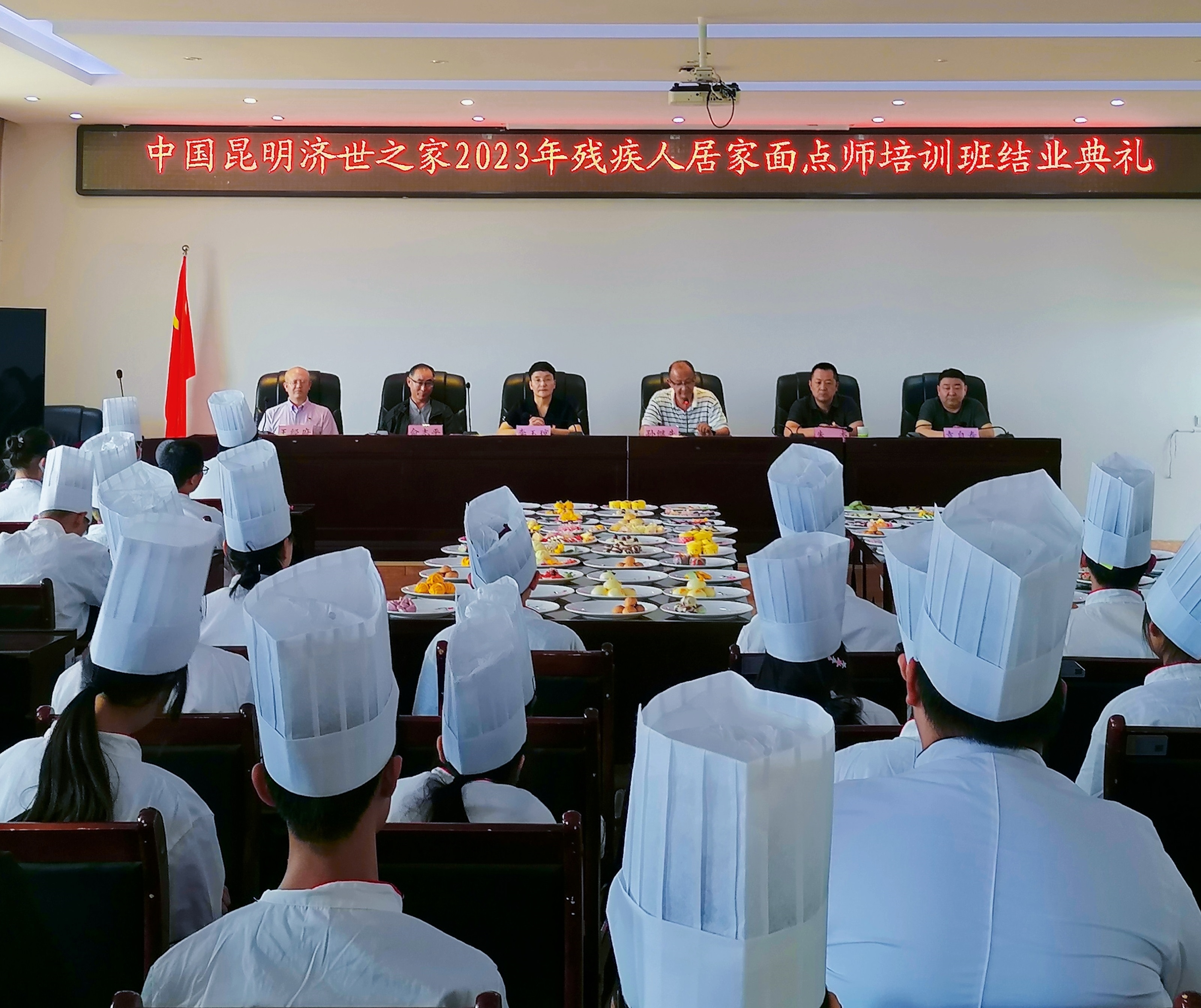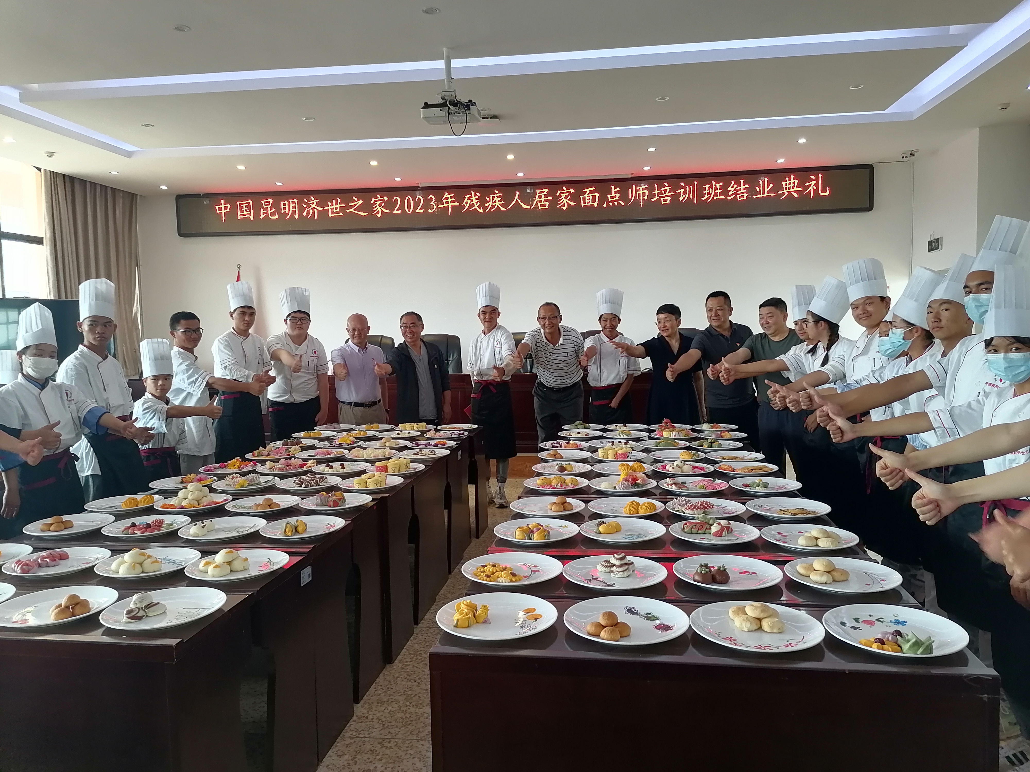6月7日,BEAT365英国官网与中国昆明济世之家合作开展的残疾学生面点师培训班迎来了鉴定考试与结业典礼。来自学院经济信息系以及艺术系的60名残疾学生在经验丰富的面点老师的指导下,经过一个月的理论学习、实际操作之后,掌握了烘焙的基础知识,包括中式点心的分类和特点、烘焙设备和工具的选择、烘焙主要原料的挑选与储存,各式点心的配方与制作。在鉴定考试时,学生们胸有成竹地答题、制作糕点,为一个月来辛苦的努力与付出画上了圆满的句号。