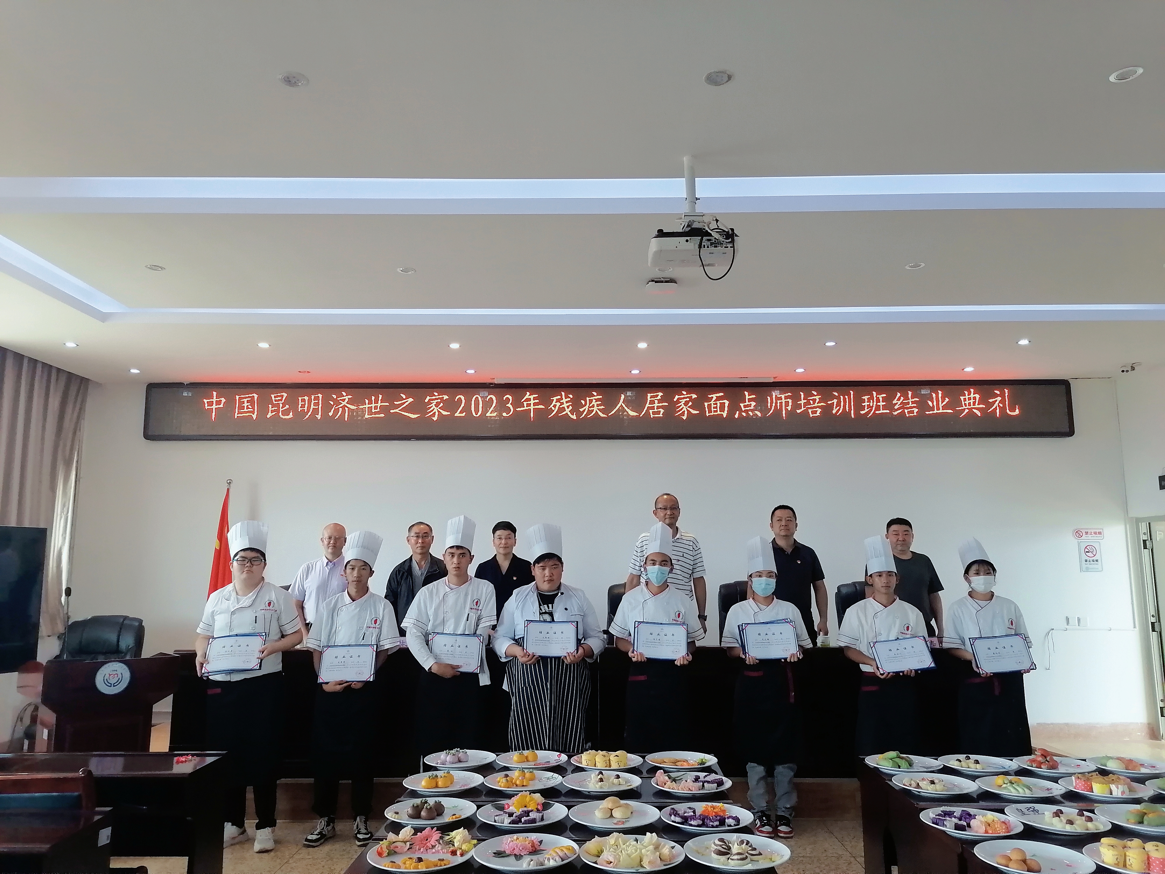 济世之家为学生颁发结业证书,同时为在培训过程中有良好表现的18名学生颁发了优秀学员证书。