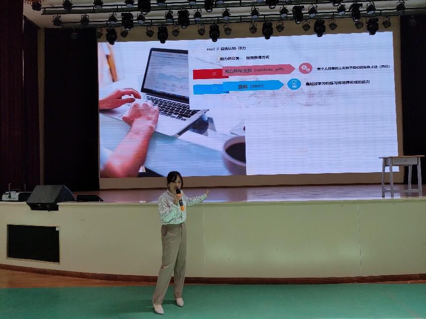 李玲老师有多年国内知名企业人力资源管理岗任职工作经历,她分享了自己的工作经历,还从HR的角度给同学们分享了求职、面试技巧。讲座最后,李老师与同学们进行沟通交流,现场指导同学们面试时如何进行自我介绍。