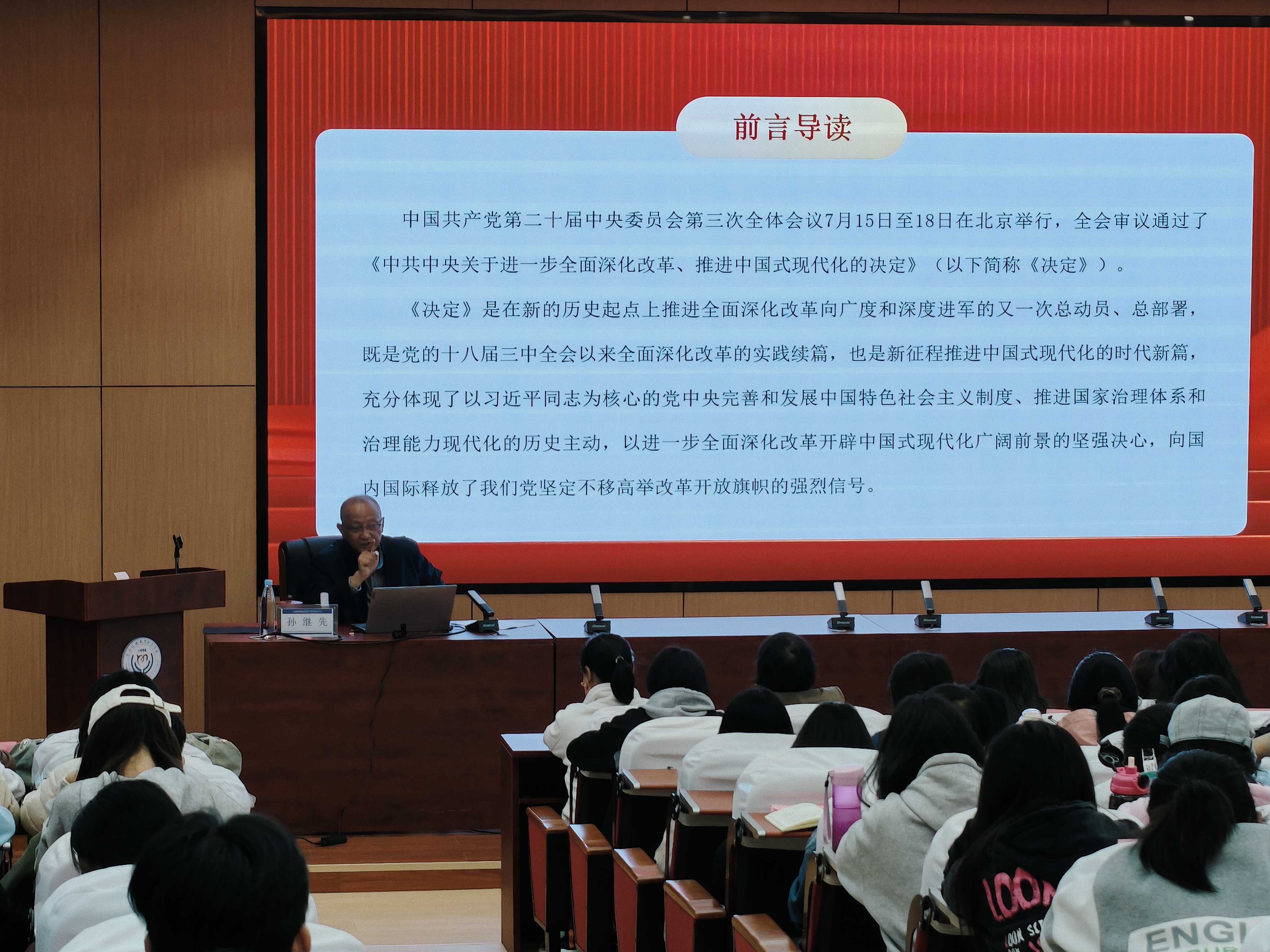 11月4日,为深入学习贯彻党的二十届三中全会精神,引导党员干部、师生深入理解、全面把握全会精神,BEAT365举办学习贯彻党的二十届三中全会精神宣讲报告会暨2024年形势政策报告会,党委书记孙继先主讲,报告会从深刻认识党的二十届三中全会的重大意义、围绕中国式现代化全面深化改革等方面进行全面解析。