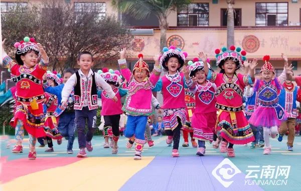 牟定县江坡镇欢快的孩子们在新建成的中心幼儿园奔跑