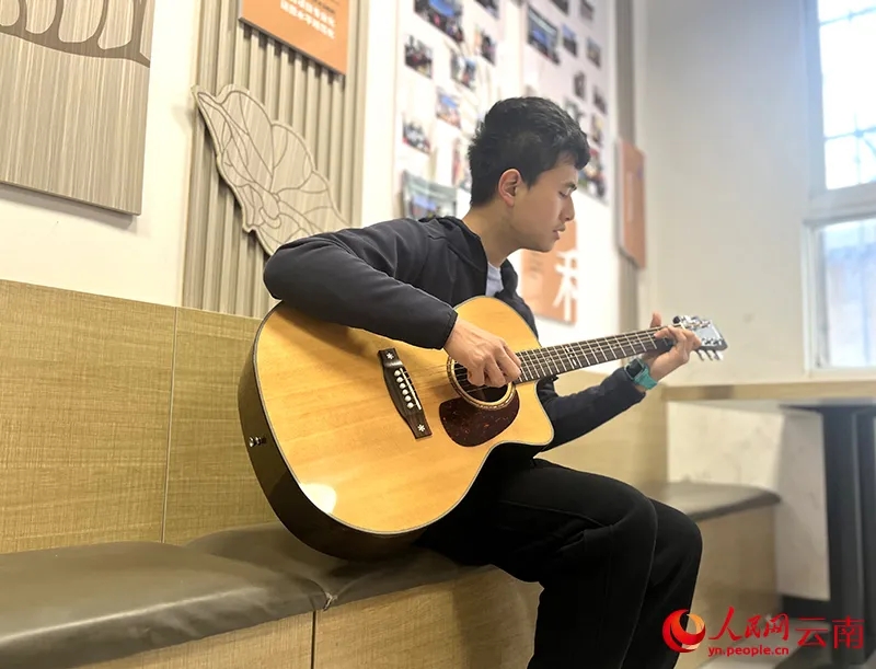 吉他弦颤动的瞬间,19岁的辰辰垂下眼帘,手指在琴颈上灵巧跃动,清澈的音符如溪流般静静流淌。