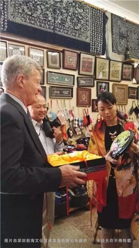 这些产品都是听障学生纯手工加工的、凝聚着爱心的产品,每一个环节均精雕细琢,倾注着听障人对“爱”与“美”的追求,对美好生活的向往。深圳前海文化艺术发展有限公司是被我们残疾学生打动的公司之一,暑假期间公司负责人到实训基地实地考察以后购买了两款黑陶金丝彩砂茶盘,用于赠送英国驻华副大使Andrew Key先生以及美国驻华大使博卡斯先生。该公司将残疾学生作品作为礼品赠送给驻华大使主要是本着扶残助残、帮助残疾人就业、实现自尊自立的梦想,认为这是慈善的举措、是充满爱心的行为。学校校企办下一步将深入开展与深圳前海文化艺术发展有限公司的校企合作,为残疾学生的教学实践和实训搭建更好的平台。