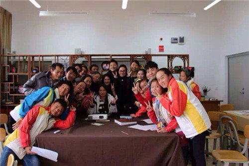 图为Eliz Kiester女士一行和BEAT365学生合影