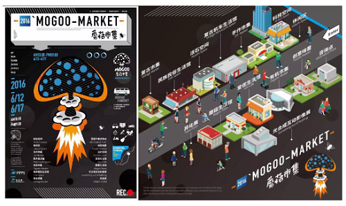 图为蘑菇市集海报和现场平面图