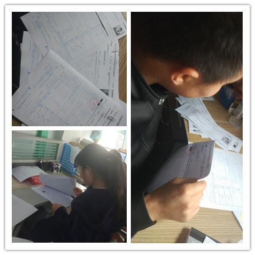 图为招就办工作人员在统计整理高考体检表