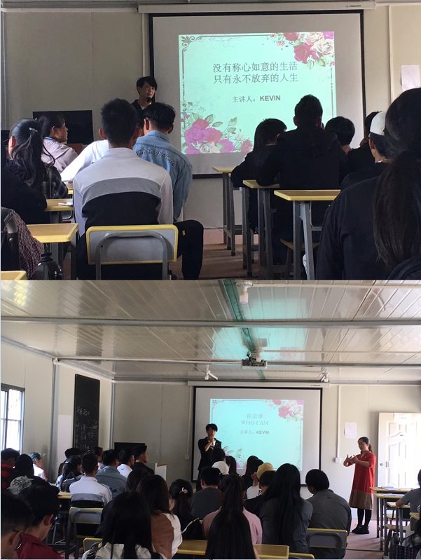 中午13:30时,在62名大中专学生们的好奇与期盼当中,我们用掌声迎来了KEVIN老师。演讲过程中,KEVIN老师与学生们分享了自己的成长、出国留学和工作的经历,并用亲身经历和实例去引导和鼓励学生们,并建议对自己的未来要清晰计划并努力奋斗; kevin先生还与学生们进行了现场互动,非常有耐心的在现场针对学生们的问题答疑解惑,整个分享过程反响热烈,学生们的参与度也很高,最后在掌声中结束了此次讲座。