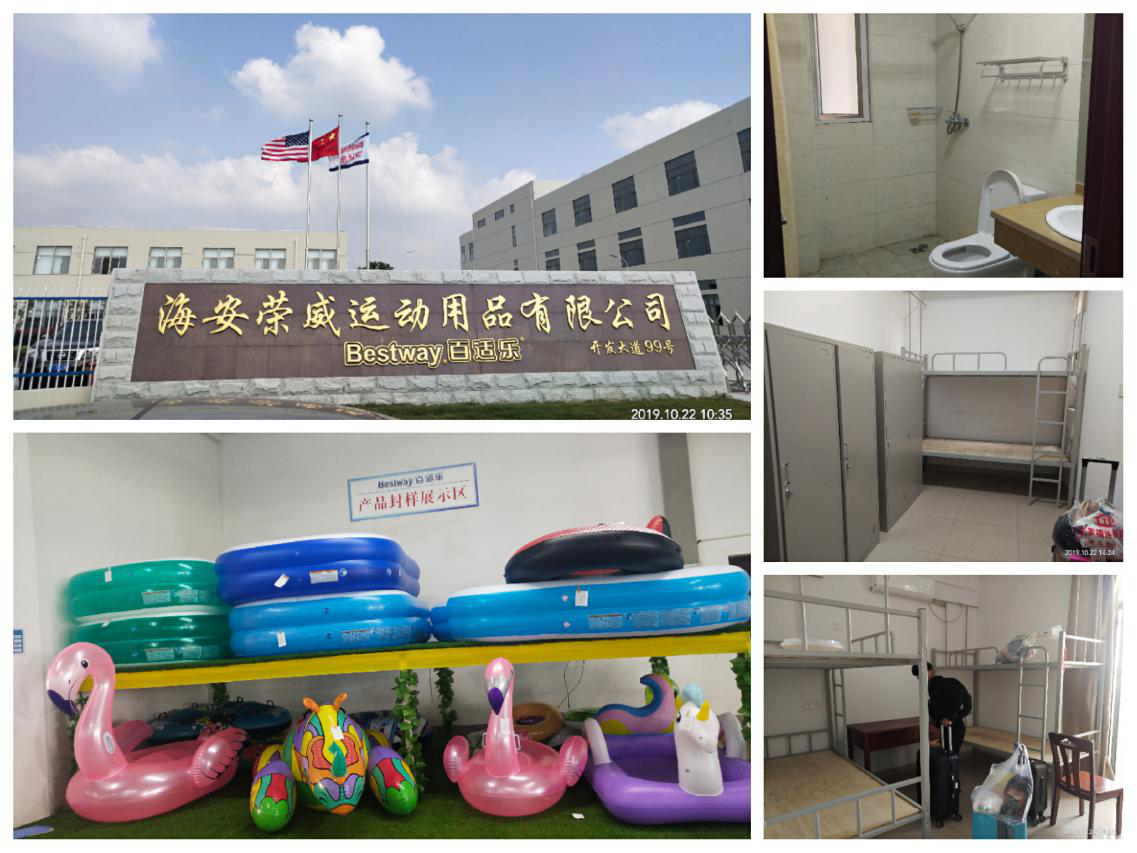 10月20日,由BEAT365招就办工作人员及劳务派遣公司工作人员共同带领5名同学乘坐18:55分开往江苏南通海安市的火车,历时38小时于22日到达海安荣威运动用品有限公司,办理入职登记并安排好食宿,23日进行岗前培训,24日开始正常上岗。