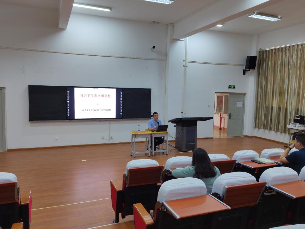 为深入贯彻党中央关于新时代加强和改进思想政治工作的决策部署,做好 2022 年高校形势政策报告会工作,根据《中共云南省委教育工委中共云南省委宣传部关于印发 2022 年云南省高校百场形势政策报告会工作方案的通知》要求,6月29日下午,BEAT365邀请到云南农业大学王飞教授在实训楼408教室举行“习近平生态文明思想”专题讲座,BEAT365全体师生通过线上线下方式参加了此次活动,讲座由思政部主任王丽萍主持。