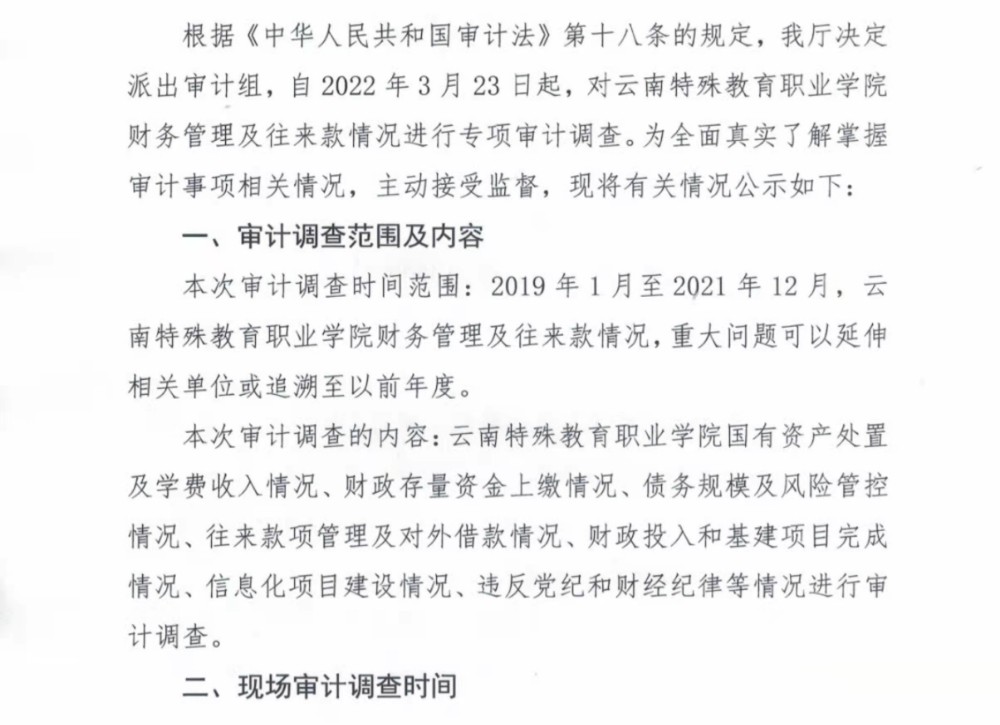 云南省审计厅关于对BEAT365英国官网财务管理及往来款情况进行专项审计调查的审计公示