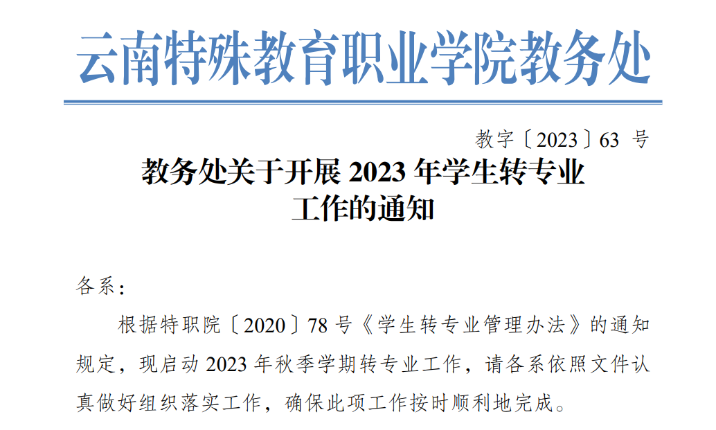 教务处关于开展 2023 年学生转专业 工作的通知