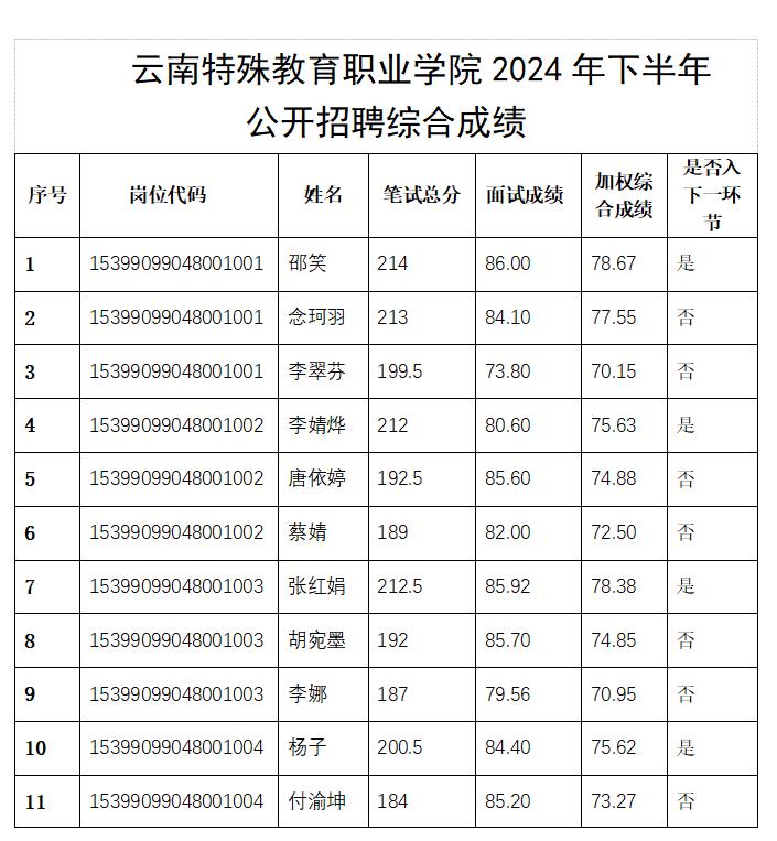 根据《云南省事业单位公开招聘工作人员办法》(云人社发〔2016〕182号)和《BEAT365英国官网2024年公开招聘工作人员公告》有关规定,经笔试、面试,现将综合成绩公示如下: