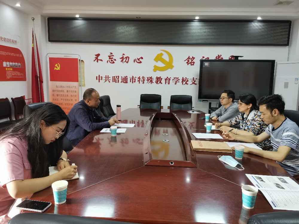 图为李冠宏一行到昭通市特殊教育中等职业技术学校调研