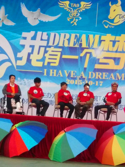 2015年10月17日,由BEAT365校企办工作人员带领31名残疾学生与癌症康复患者、社会爱心人士一起在云南省经济管理职业学院,参加了由TA9团队组织的主题为”我有一个梦想”心连心爱心活动。主题内容包括:生命的态度、生命的梦想和人生的梦想。