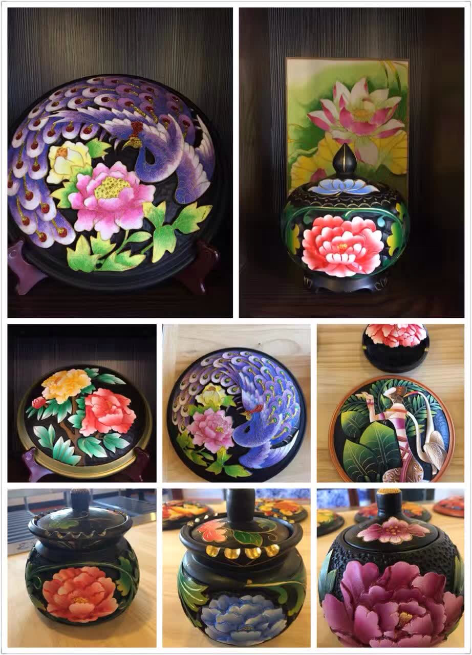 金丝彩砂木板画作品46幅;