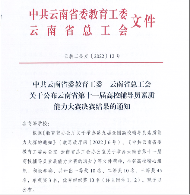 8月4日,云南省第十一届高校辅导员素质能力大赛圆满落幕。我院经济信息系辅导员郜锐荣获三等奖。