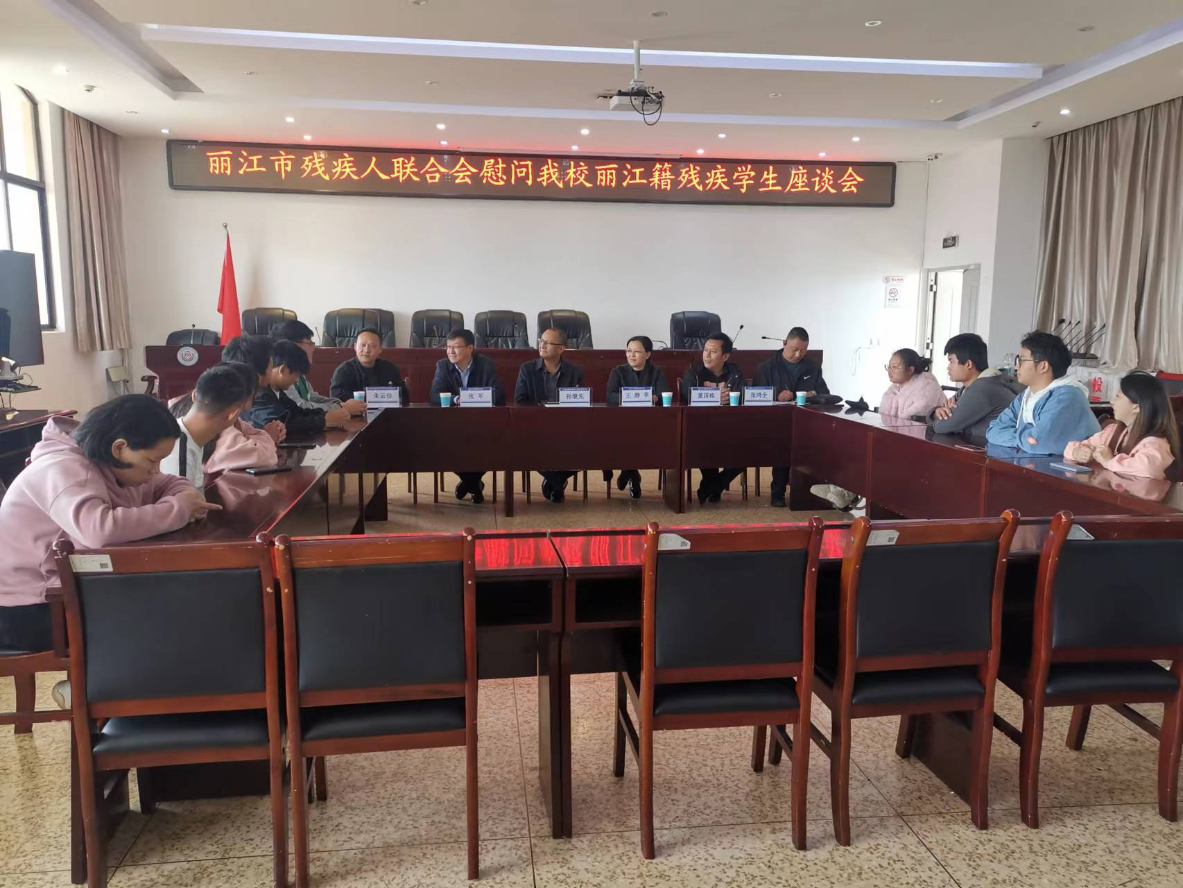 2023年11月13日,丽江市残疾人联合会领导一行4人到BEAT365看望慰问了30名丽江籍残疾学生。学院党委书记孙继先、学生处处长朱云佳同志参加了此次慰问座谈会。会议由学生处处长朱云佳主持。