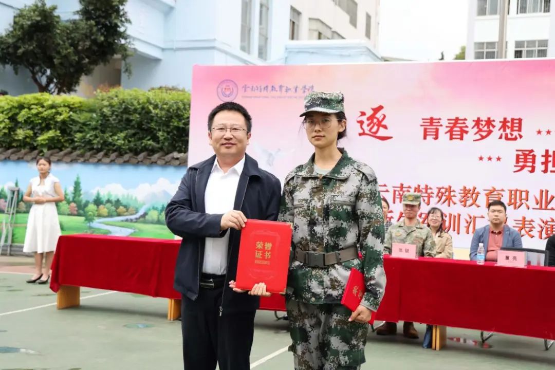 随后,石红副校长宣读了表彰决定,董亮校长给军训优秀集体颁奖,李冠宏副校长给军训优秀学员颁奖。