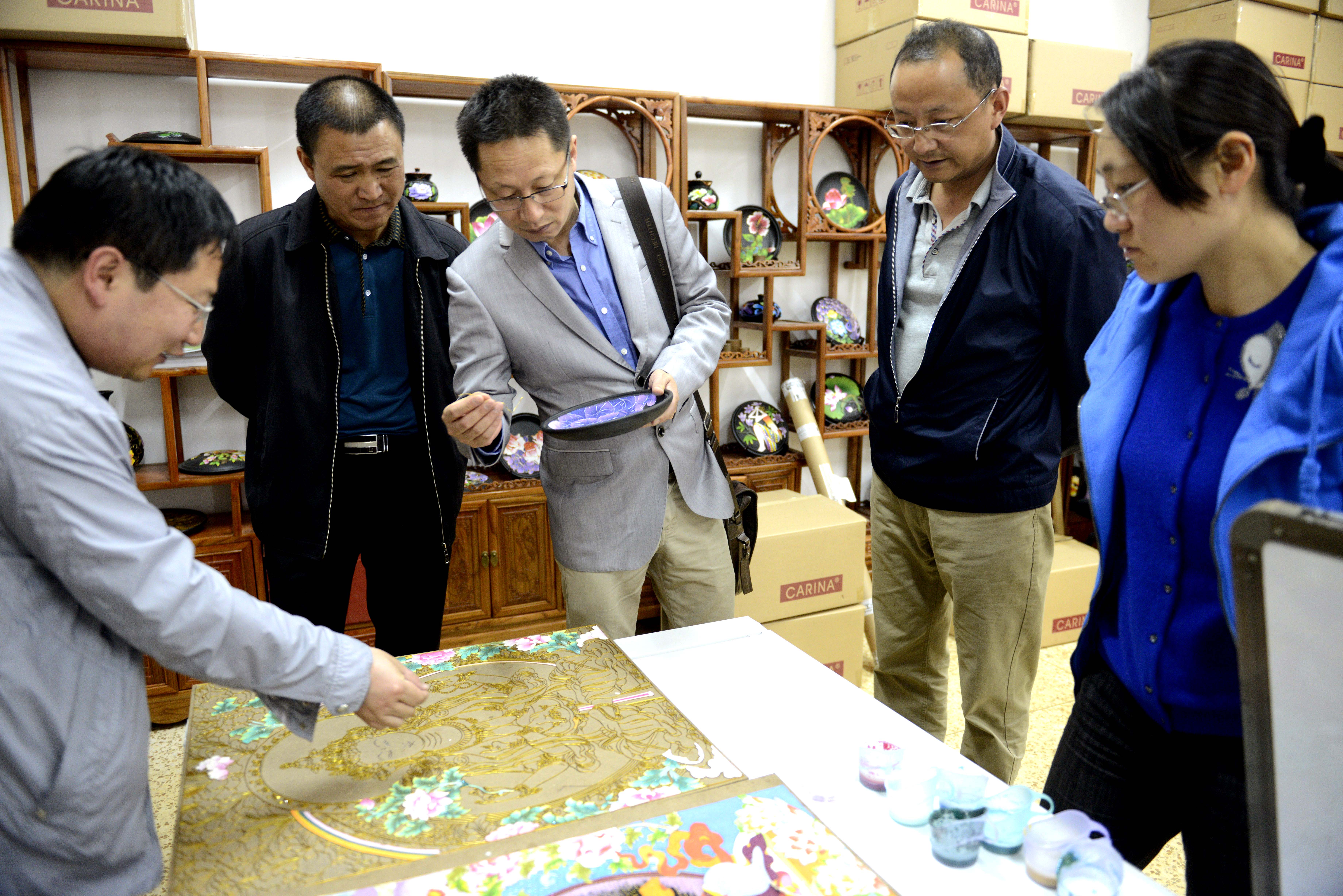 图为邱林、李永珺一行领导参观工艺美术孵化园