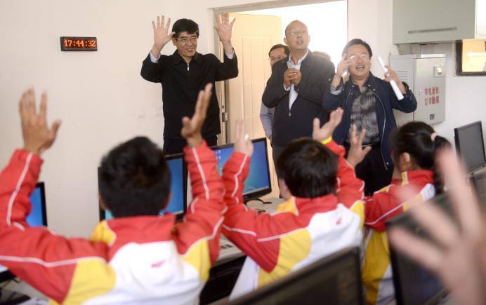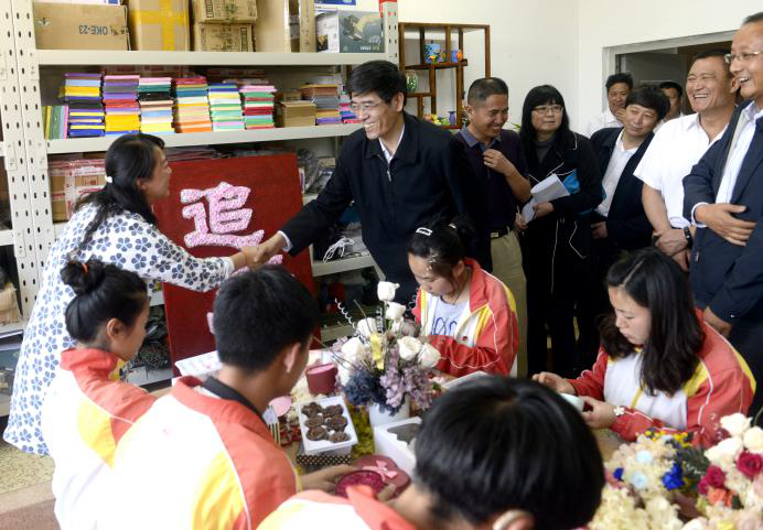 调研期间,鲁勇理事长仔细询问了学校办学情况。当见到残疾教师黄继云手杵双拐授课时,鲁理事长给予了深切的赞许和勉励。在聋生班教室,同学们对领导的到来,表现出了极大的热情,鲁理事长也用手语向同学们表达了亲切的问候。当在工艺美术展室里看到残疾学生制作出的具有浓郁云南民族特色的工艺品时,一行领导对学校的残疾人职业教育成果赞誉有加。在孵化园里,肢残生正接受电子商务培训,聋生正在开展金丝掐画和干花制作培训。鲁理事长表示,同学们学习积极性很高,学校为他们打造了很好的教育平台,让学生学有良技,业有所专,在走出校门前得到充分的锻炼和培养,为就业打下了好基础。