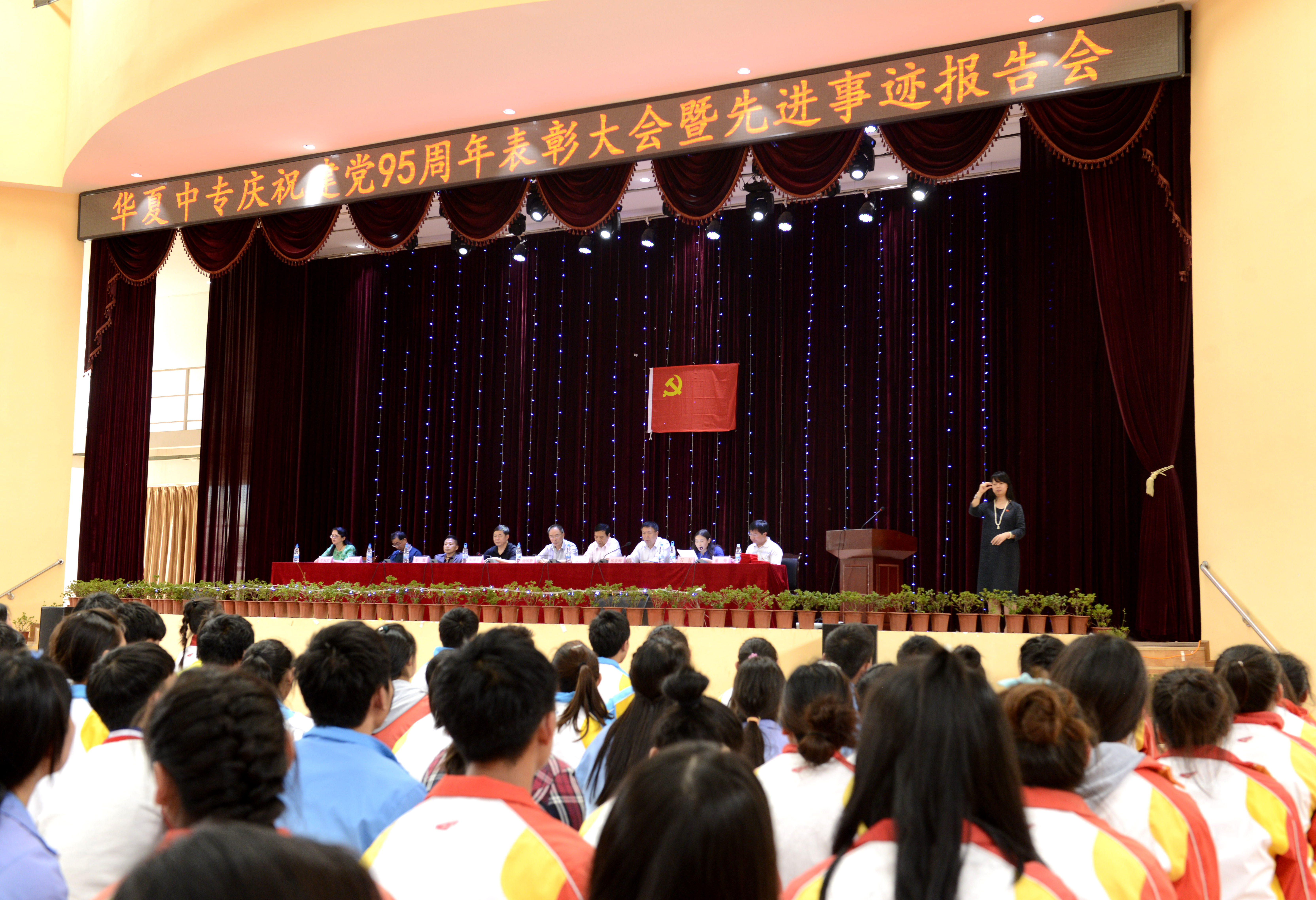 图为华夏中专庆祝建党95周年表彰大会暨先进事迹报告会现场