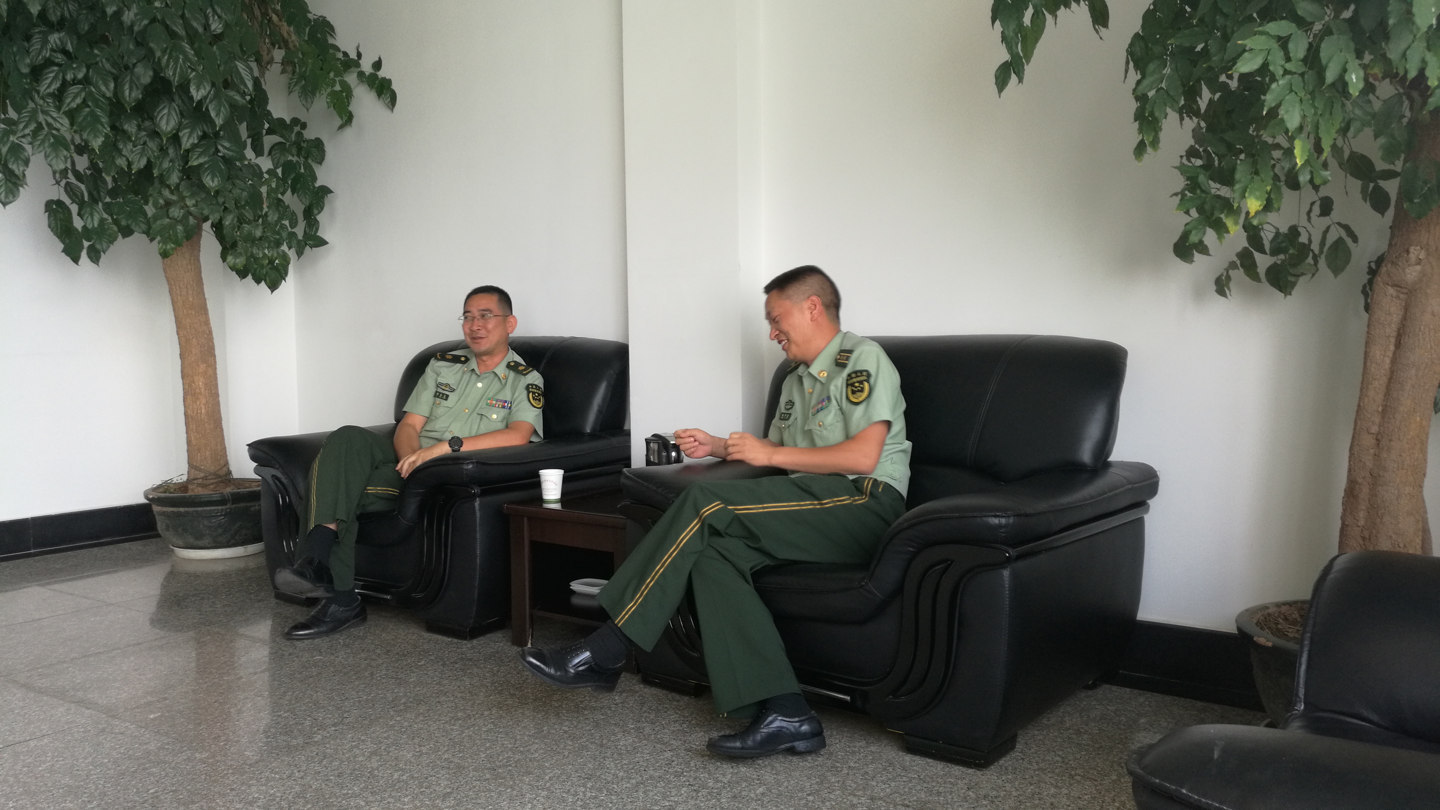 图为:学校领导与武警总队医院领导进行座谈